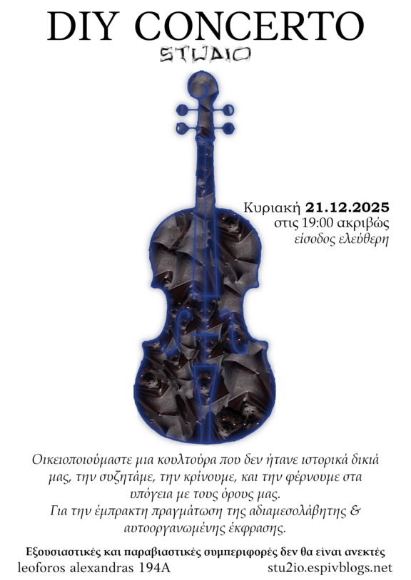 Ετοιμαστείτε για μια λιγάκι διαφορετική δράση, μιας και αφορά το πρώτο μας DIY μουσικό κονσέρτο κλασικής μουσικής, σε συνδιαμόρφωση με ατομικότητες με αμφότερες τις εμπειρίες του ωδείου και της αυτοοργανωσης.