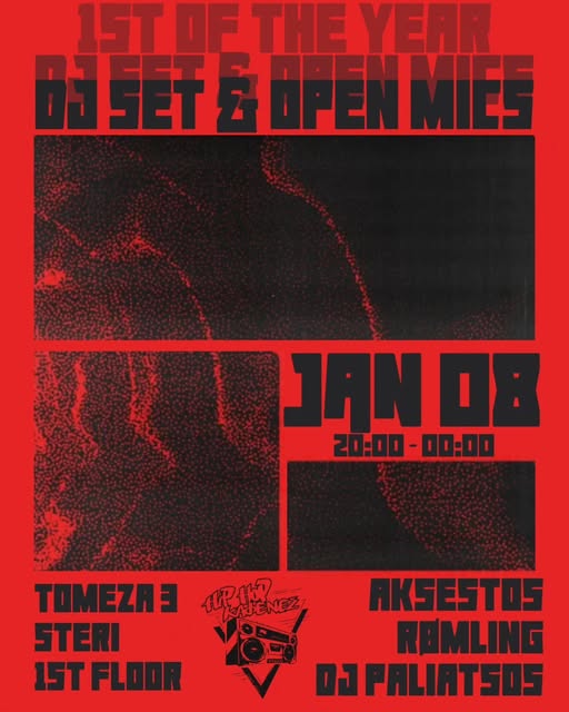 Την Πέμπτη 8 Ιανουαρίου 2026 σας περιμένουμε στον χώρο μας Τομεζά 3 Περιστέρι, στον πρώτο όροφο για το πρώτο dj Set για το 2026 με τους δικούς μας Άξεστο, Romling & Dj Paliatso από τις 20:00 ως τις 00:00 να επιλέγουν μουσικάρες και όποιος θελει με ετοιμο, παλιό, νέο ή freestyle ερχεται να τα πει στα open mics.