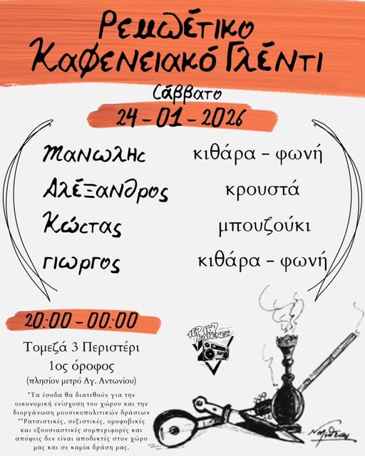 Σας την φέραμε με Ρεμπέτικο το Σάββατο…. να πιούμε λιγάκι, να ζεσταθούμε λιγάκι, να τα πούμε και να τραγουδήσουμε πολύ!
