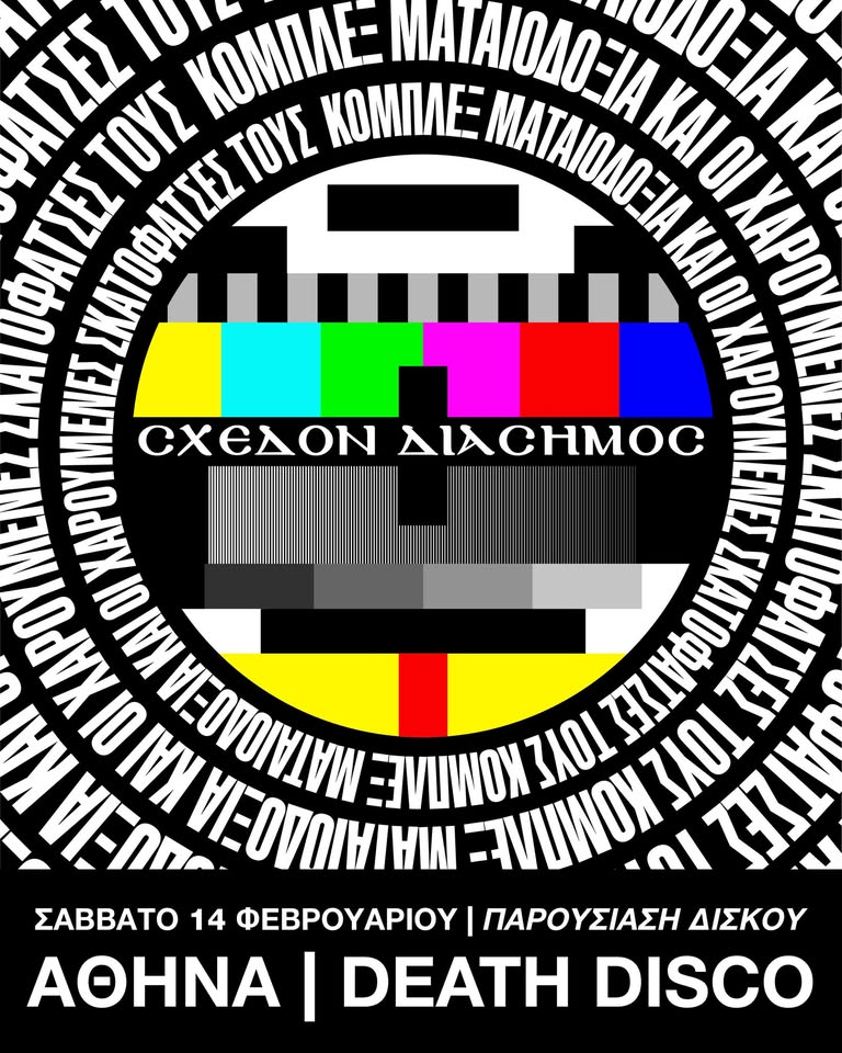 Ο ΣΧΕΔΟΝ ΔΙΑΣΗΜΟΣ το νέο μουσικό project του Τζίμη Πολιούδη(MAZOHA) έρχεται στο Death Disco στις 14 Φεβρουαρίου να παρουσιάσει το δίσκο του ΚΟΜΠΛΕΞ,ΜΑΤΑΙΟΔΟΞΙΑ ΚΑΙ ΟΙ ΧΑΡΟΥΜΕΝΕΣ ΣΚΑΤΟΦΑΤΣΕΣ ΤΟΥΣ.