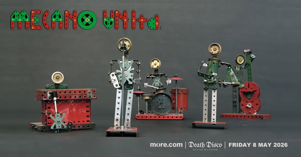 Την Παρασκευή 8 Μαΐου 2026, οι Mecano Un-Ltd εμφανίζονται στο Death Disco, για μια μοναδική συναυλία που συνδέει το παρελθόν, το παρόν και το τελευταίο κεφάλαιο μιας μυθικής διαδρομής.